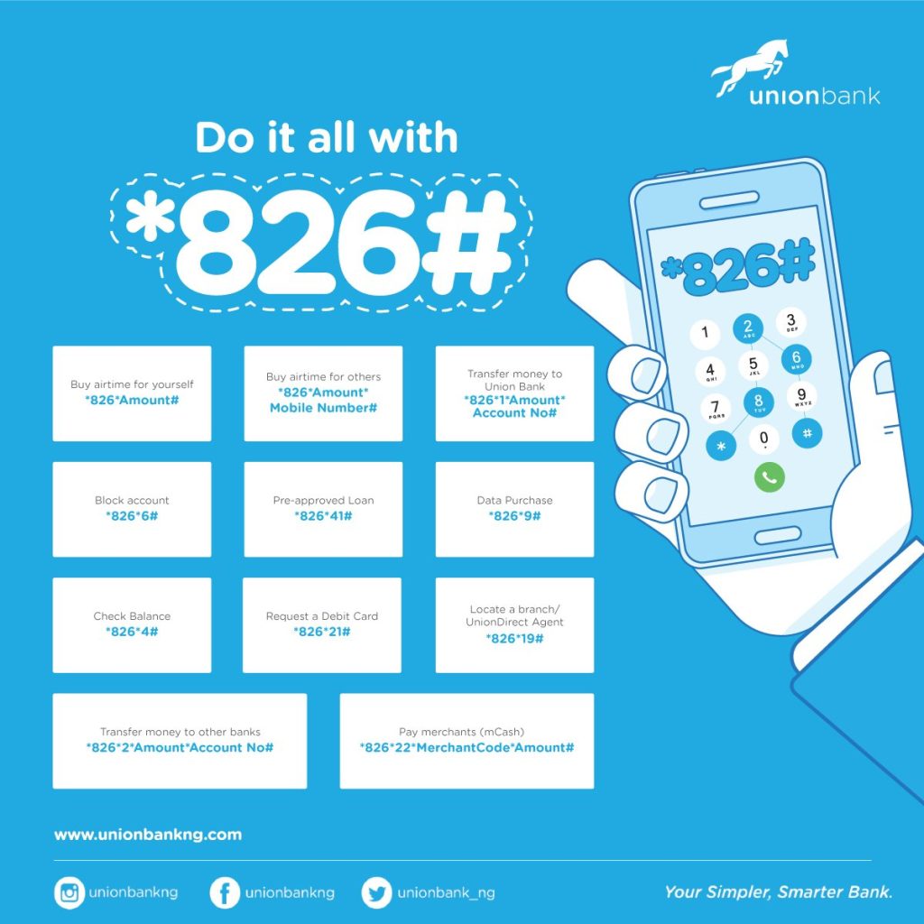 The USSD code for Union Bank is *826#.